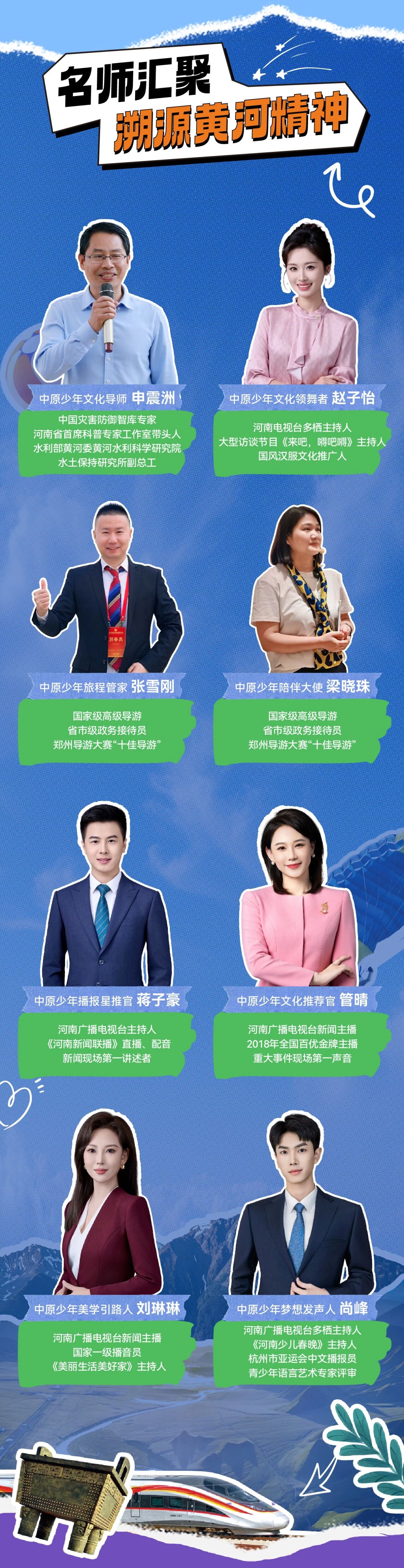 5位河南廣播電視臺知名主持人大咖組成“中原少年星推天團”,全程見證少年們的研學蛻變之,將中原少年的研學足跡,通過鏡頭傳入千家萬戶,讓黃河背后的故事被更多人看見。